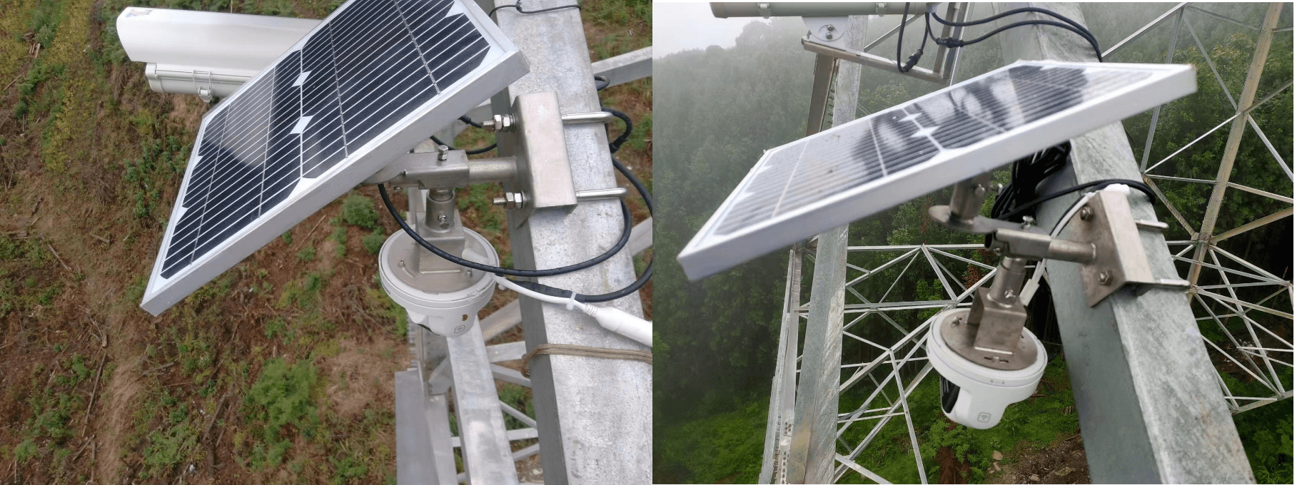 輸電線路微云臺圖像監(jiān)拍裝置采用低功耗設(shè)計,由太陽能與蓄電池供電,工作時主要通過微型云臺攝像機對輸配電線路的運行狀況及周圍環(huán)境進行實時監(jiān)控,并利用AI識別對外力破壞因素進行抓拍及告警,同時將外力破壞等數(shù)據(jù)經(jīng)過數(shù)字化壓縮編碼后,使用4G傳輸加密上傳監(jiān)控中心,監(jiān)控人員可通過客戶端及手機APP訪問平臺,實時了解前端外破情況,及時做出應(yīng)急措施,為電力系統(tǒng)的穩(wěn)定運行提供了強有力的支持。