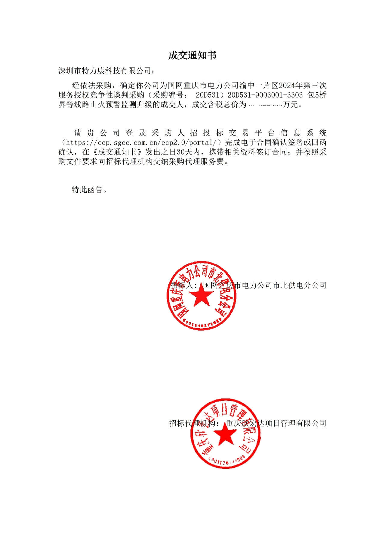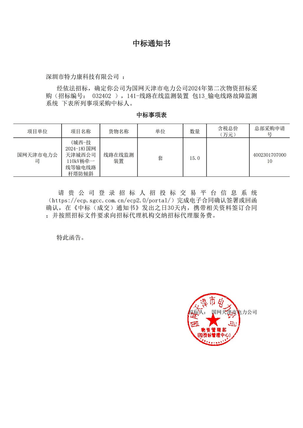 特力康中標(biāo)國網(wǎng)黑龍江送變電工程公司的2024年度第18次物資類競爭性談判采購項(xiàng)目——慶陽驅(qū)鳥器物資框 特力康中標(biāo)國網(wǎng)甘肅省電力公司省管產(chǎn)業(yè)單位2024年第五次物資競爭性談判授權(quán)采購項(xiàng)目 中標(biāo)喜訊:深圳市特力康科技有限公司成功入圍許繼集團(tuán)綜合能源公司輸電線路視頻在線監(jiān)測裝置模塊集采項(xiàng)目 中標(biāo)喜訊:特力康成功中標(biāo)國網(wǎng)重慶市電力公司渝中一片區(qū)項(xiàng)目 特力康成功中標(biāo)國網(wǎng)天津市電力公司2024年第二次?物?資招標(biāo)項(xiàng)目 特力康中標(biāo)國網(wǎng)安徽省電力有限公司蕪湖供電公司2024年3月非物質(zhì)采購項(xiàng)目 黑龍江供電公司:特力康智能激光驅(qū)鳥器守護(hù)變電站? 遼寧電力攜手特力康,“觀冰精靈” 守護(hù)冰雪輸電線? 特力康輸配網(wǎng)可視化監(jiān)拍裝置落戶新疆:讓千里電網(wǎng)線路盡在 "掌" 握 特力康測溫裝置:山西電力的隱形溫度守護(hù)者 AI 慧眼守護(hù)瀟湘銀線:湖南電力攜手特力康構(gòu)建輸電通道智能防護(hù)網(wǎng) 特力康電纜隧道監(jiān)控:讓地下電力生命線透明化 寧夏電力攜手特力康:輸電線路三目遠(yuǎn)程圖像系統(tǒng)守護(hù)塞上電力動脈 甘肅電力新防線:甘肅電力攜手特力康開啟輸電線路智能監(jiān)測新時(shí)代 河南電力公司攜手特力康,五目智能監(jiān)拍筑牢輸電線路安全防線 特力康輸電線路覆冰在線監(jiān)測系統(tǒng)守護(hù)河南電網(wǎng):讓輸電線路告別"冰甲之患" 特力康變電站固定式激光驅(qū)鳥器入駐湖南變電站:讓"電力心臟"告別鳥害困擾 輸電線路通道智能監(jiān)拍裝置賦能江西電力,筑牢輸電線路——全天候智能“電子 深圳特力康多目云臺可視化巡檢裝置,賦能江西電力智能巡檢新升級? 特力康輸電線路微弧垂在線監(jiān)測系統(tǒng)——山西電力公司大跨越輸電線路安全升級工程案例 特力康導(dǎo)線接觸式覆冰監(jiān)測裝置:守護(hù)河南電網(wǎng)的“冰雪衛(wèi)士” 深圳特力康輸電線路微波覆冰預(yù)警系統(tǒng):山東電力公司冬季保電實(shí)戰(zhàn) 深圳特力康桿塔多目云臺視頻裝置:戈壁電網(wǎng)的“千里眼” 寧夏配電線路安裝了我司防外破電子化智能警示牌